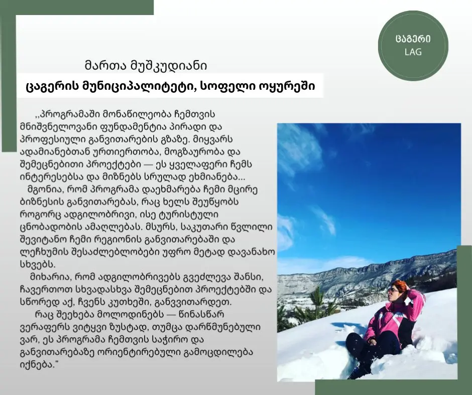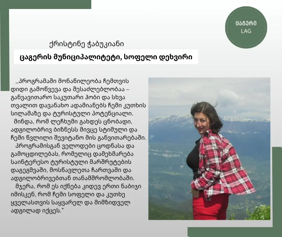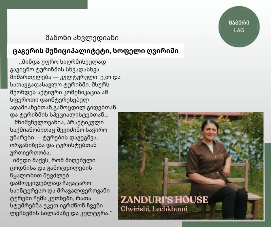 პროგრამას ახორციელებს ცაგერის ადგილობრივი სამოქმედო ჯგუფი (LAG Tsageri) ევროკავშირის მხარდაჭერილი პროექტის — „მთიანი საქართველოს ახალი სიცოცხლე“ (ENPARD IV) ფარგლებში.
