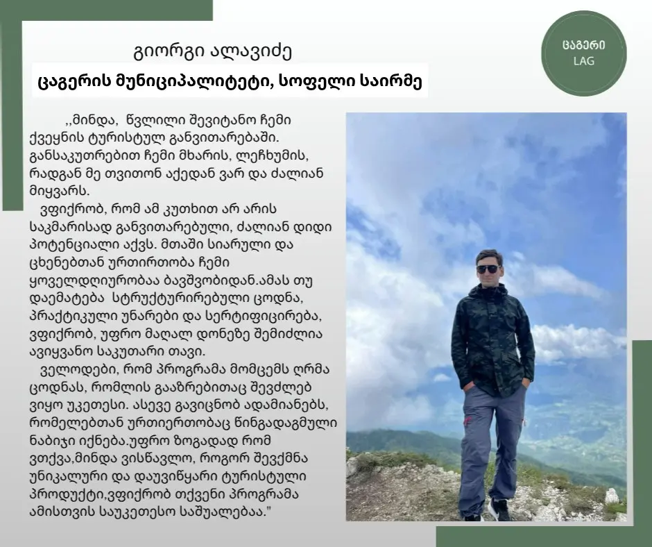 ჩვენი გუნდი სიამაყით წარმოგიდგენთ 20 ადამიანს, რომლებმაც წარმატებით გაიარეს შერჩევის ეტაპი და შეირჩნენ გიდების გადამზადების პროგრამაში!